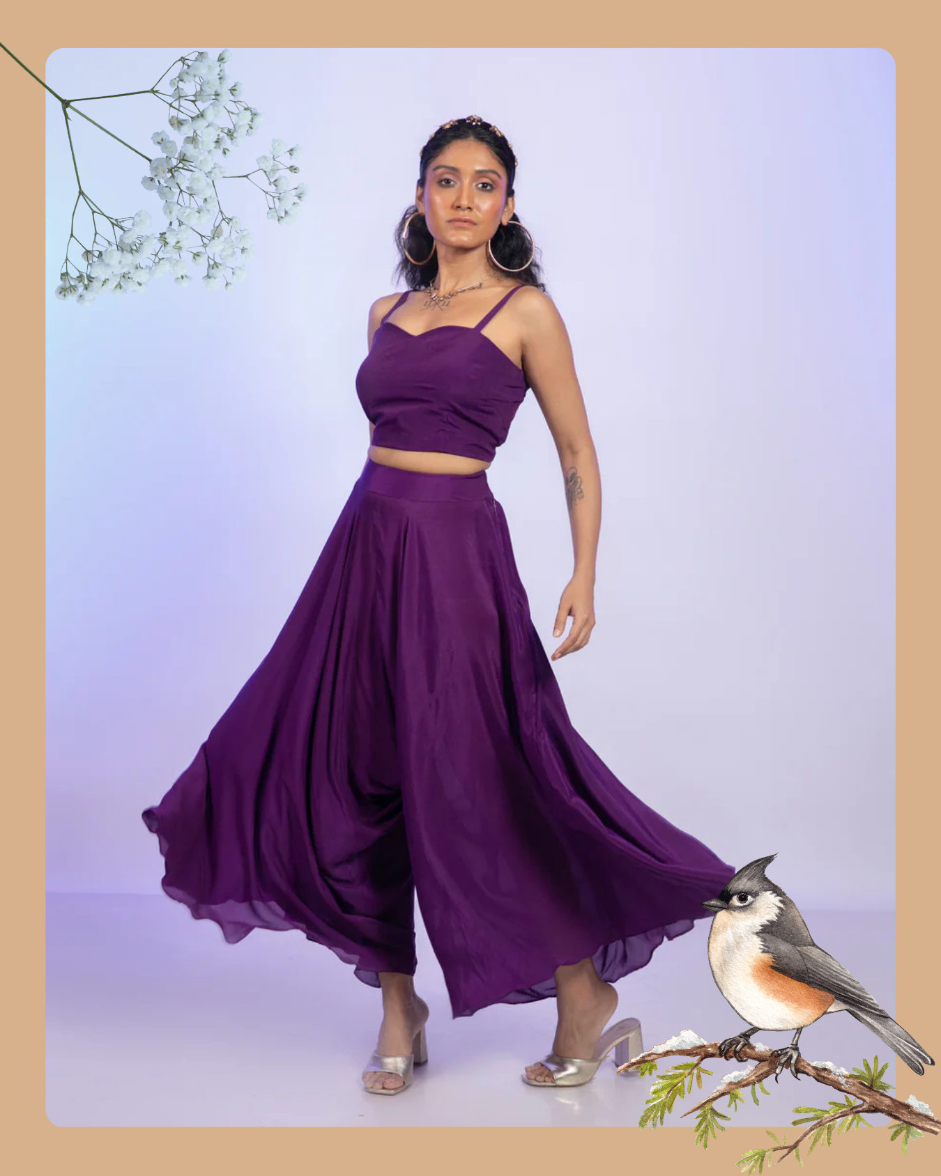 Purple Handwoven Banarasi Silk Kurta Garara Set